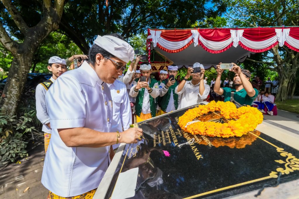 Bupati Badung I Nyoman Giri Prasta bersama Ketua TP. PKK sekaligus Bunda PAUD Kabupaten Badung Nyonya Seniasih Giri Prasta menghadiri acara pemelaspasan alit serta meresmikan Taman Bermain Ramah Anak “Mangupura” Badung dengan menandatangani prasasti dan pemotongan pita, Selasa (14/1). Taman bermain ini terletak di sisi Barat Wantilan Jaba Pura Lingga Bhuana, Puspem Badung.